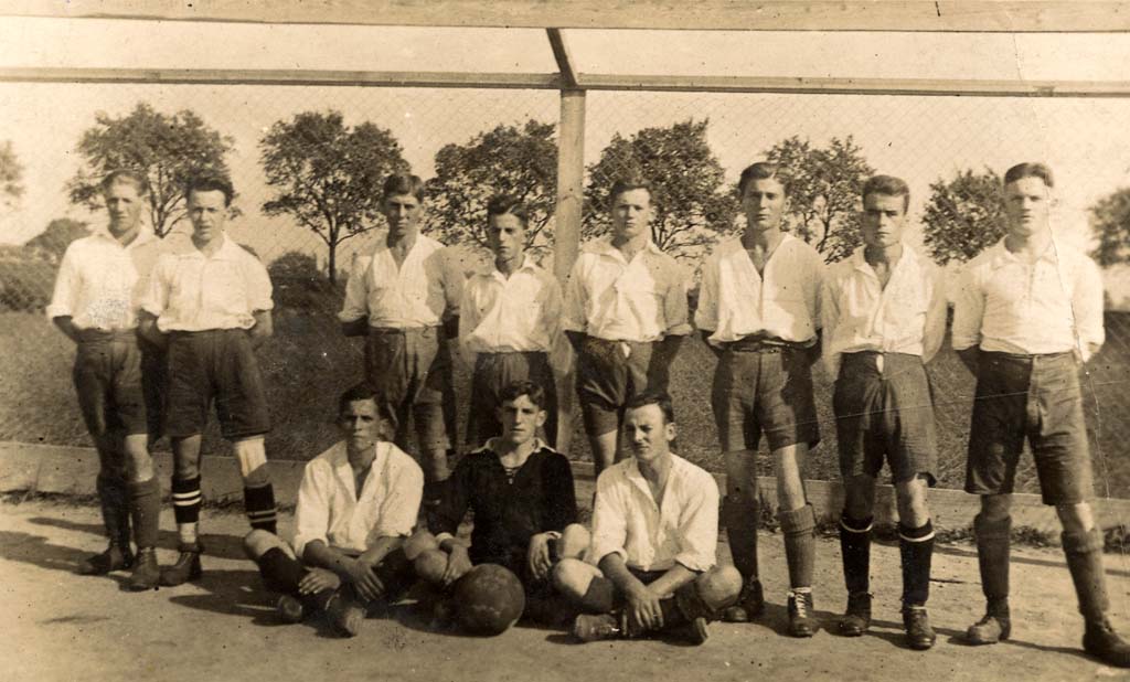 Übernahme eines Geländes an der Bahnlinie durch den FC Germania und Anlage eines Sportplatzes sowie eines behelfsmäßigen Clubhauses in Eigenarbeit